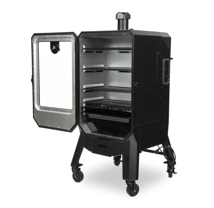 Deze smoker is gebouwd met vier gemakkelijk te manoeuvreren wielen en is de perfecte aanvulling op elk feest. Roken, braden en bakken zijn zo handig dat je redenen zult ontdekken om hem bij elke gelegenheid te gebruiken. De Pro Series 4-Series Vertical Wood Pellet Smoker is klein en gemakkelijk te verplaatsen, maar heeft toch een krachtig vermogen. Hij heeft vier porselein gecoate rekken die bijna 7000 cm² kookruimte bieden. Bovendien heeft deze rookoven een groot kijkvenster zodat je niet meer hoeft te gluren.