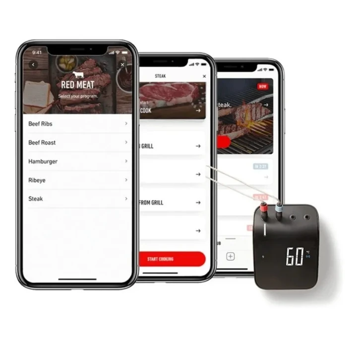 - Selecteer de gewenste gaarheid (bijv. medium-rare) en krijg een waarschuwing wanneer het vlees gaar is